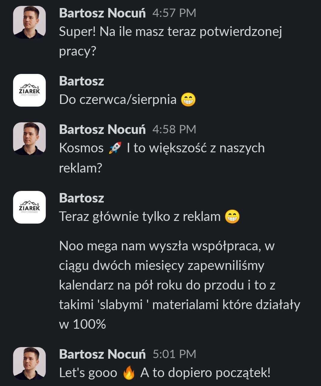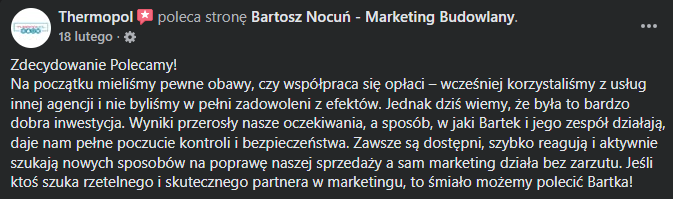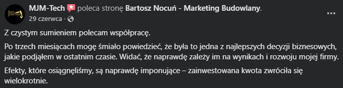 „Reklamy nie tylko się zwróciły – one przyniosły bardzo duży profit. Dzięki współpracy mamy zapełniony kalendarz na kilka miesięcy do przodu i mogę ze spokojem patrzeć w przyszłość.”