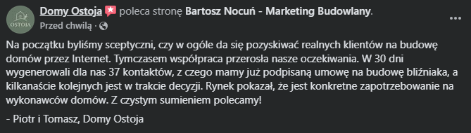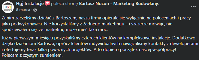 „Nie spodziewałem się tylu zleceń – już po pierwszym miesiącu z dwóch podpisanych prac zwrócił mi się cały koszt reklamy, a kolejnych kilkadziesiąt klientów czeka w kolejce.”